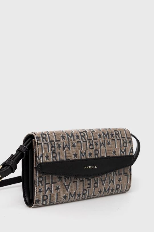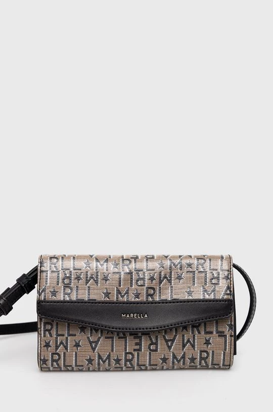 Μικρή τσάντα από τη συλλογή Marella. με κλείστρο μοντέλο απόαπό συνδυασμό υφασμένου υφάσματος και οικολογικού δέρματος.